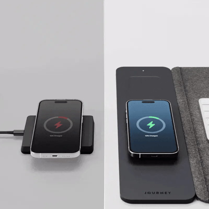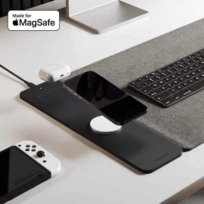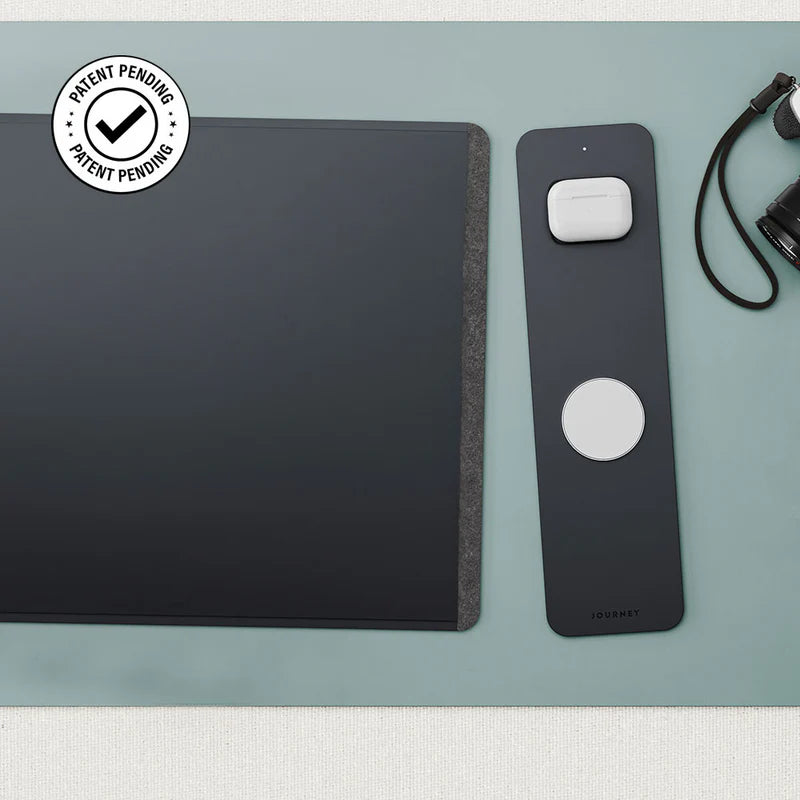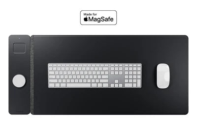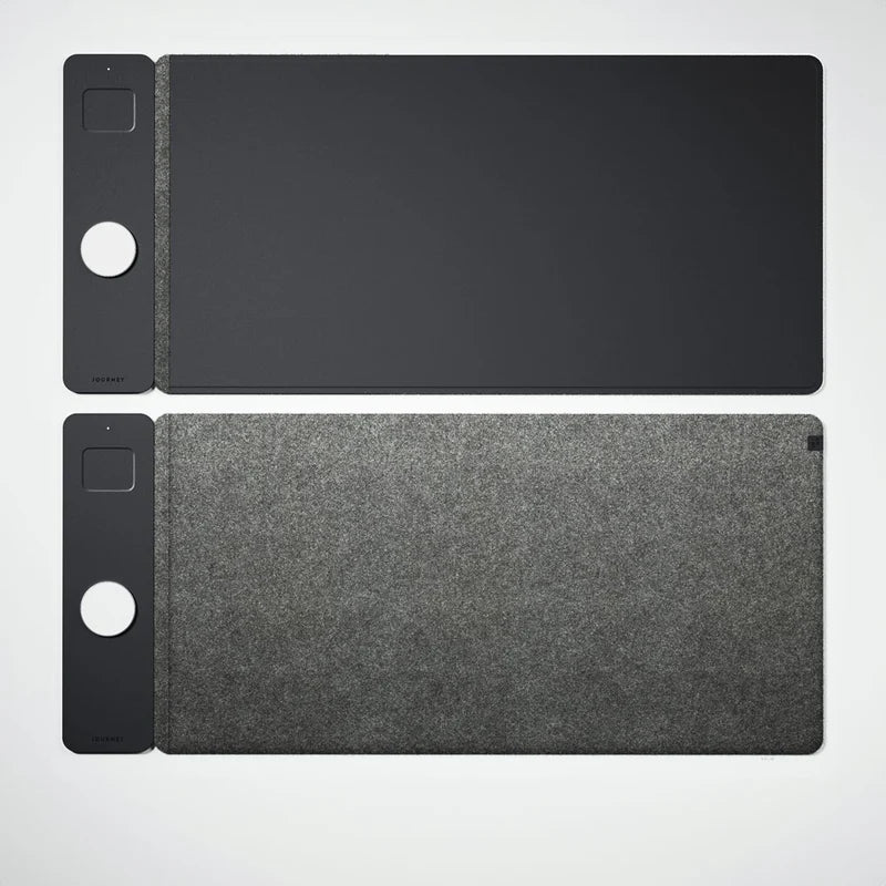 Experience the ultimate desk organization with our double-sided desk mat ALTI ULTRA. One side boasts a luxurious vegan leather surface, while the other offers soft felt. In between, you'll find a concealed document hideaway zone. Plus, it's equipped with a 15W MagSafe charging pad for your iPhone and wireless charging for your AirPods. Stay stylish and organized with this all-in-one desk mat.