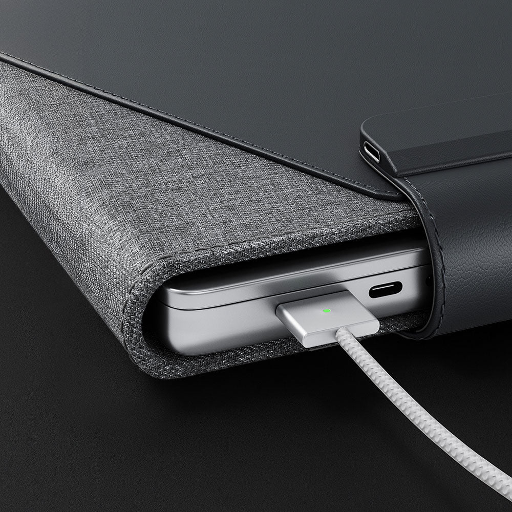 With the Loc8 Sleeve, your laptop charges comfortably inside the sleeve — ready to go when you are.