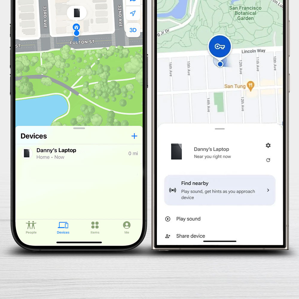 Built-in location tracking that works seamlessly with both Apple Find My and Google Find My Device networks