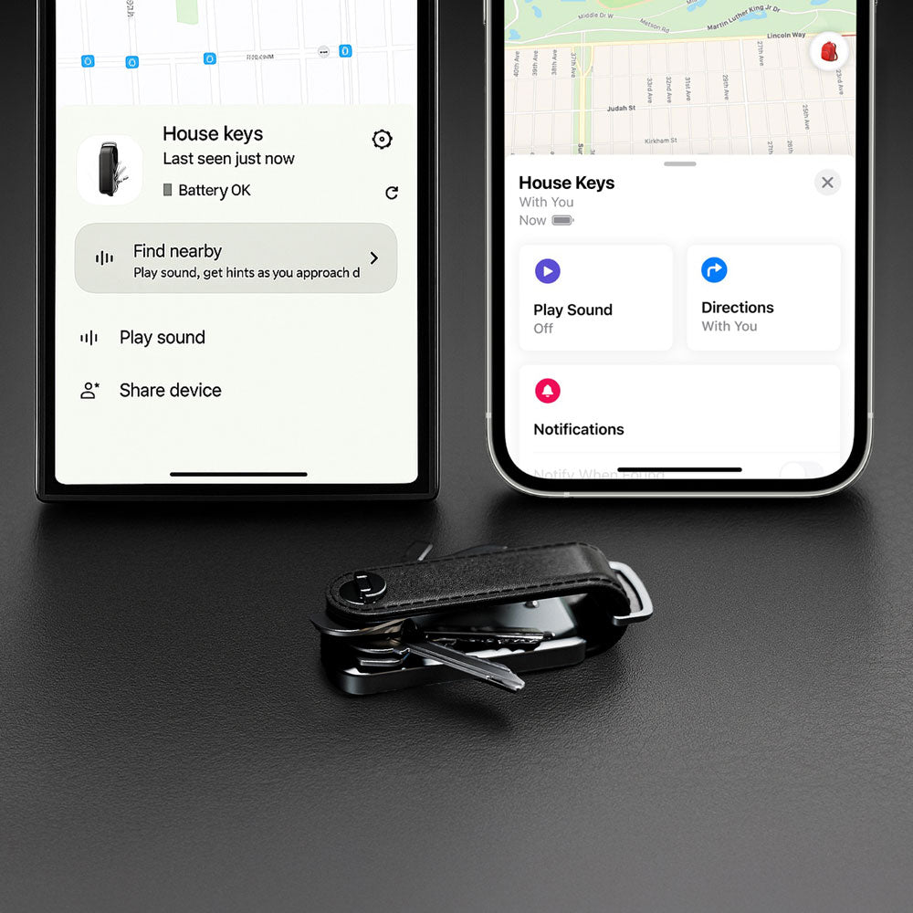 Compatible with both Apple’s Find My and Google’s Find Hub networks, locate your keys on any device — Apple or Android.